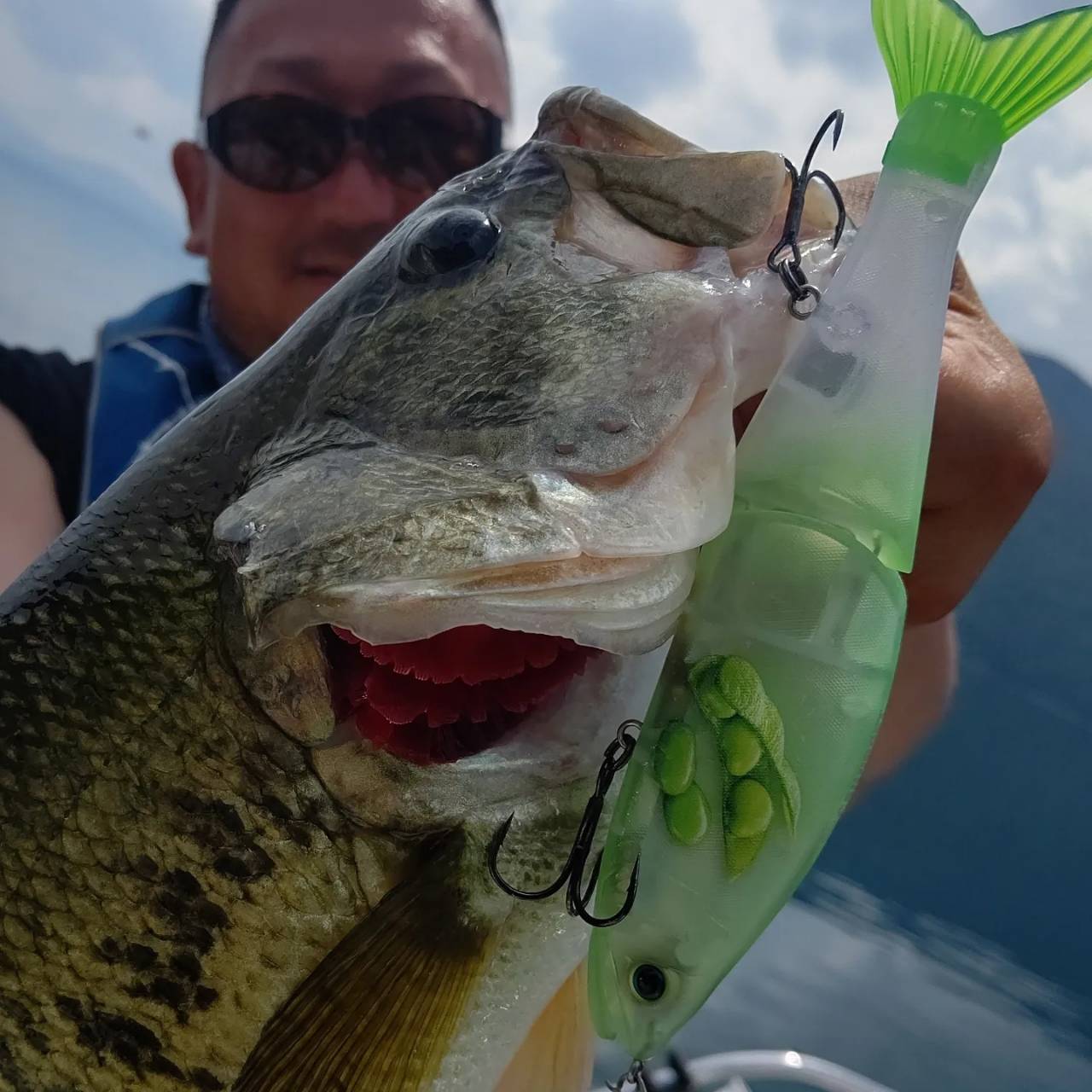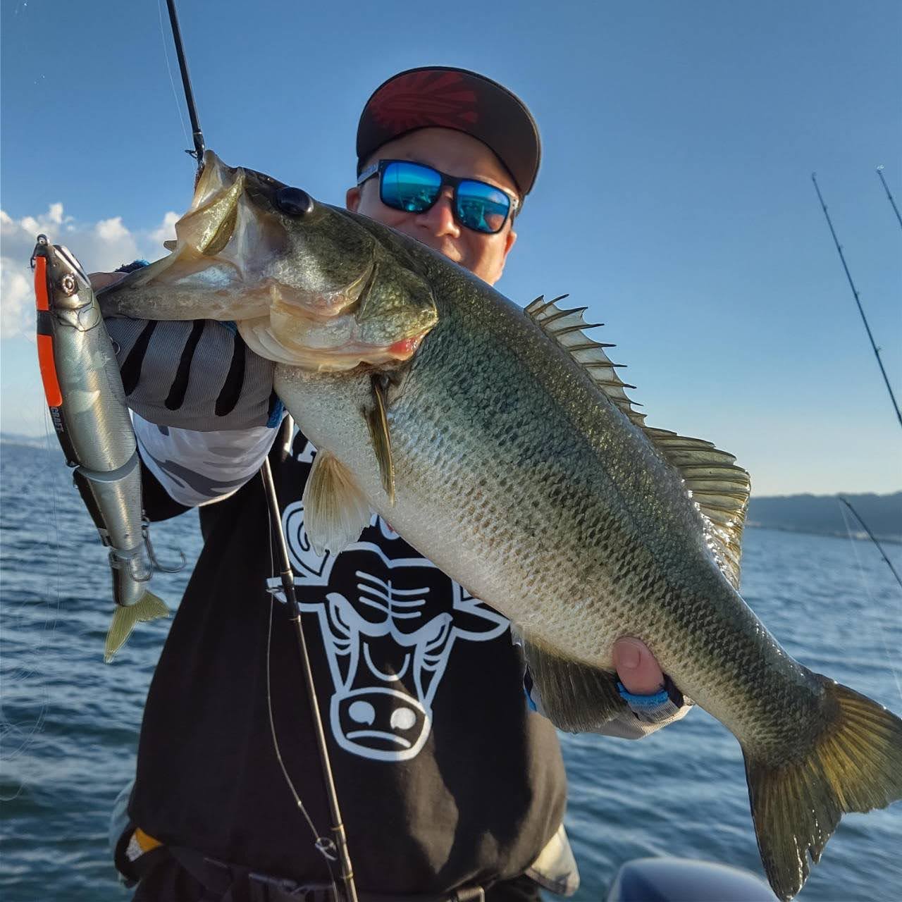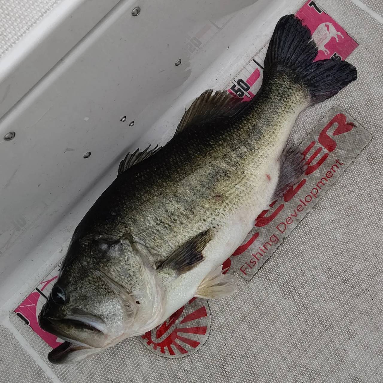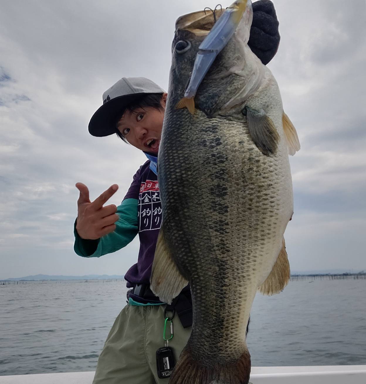 また、別日にも同様のアクションを試してみましたが、晴れ・無風ではほとんど食わず、同じく曇天or雨・風ありではキャッチする事ができました。キーはこのタイミングでベイトとなっていた約20cmほどのコバス。強ジャークによりコバスを散らせた結果、大きなバスが反応してきたと考察しております。