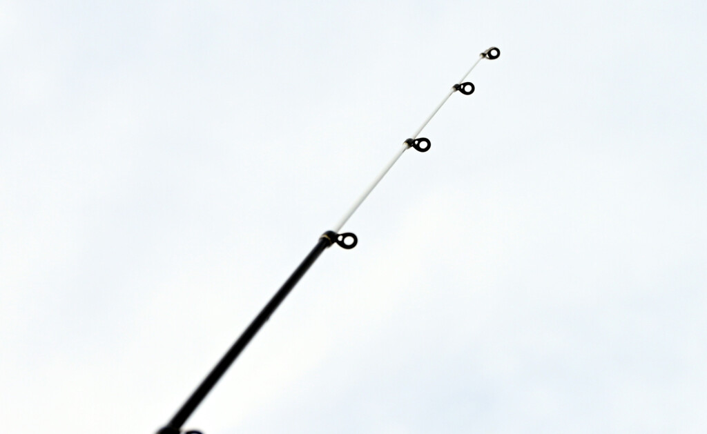 △トリプルクロス黒鯛・ソリッドモデルのTCX-S782ML黒鯛のティップ。ボトム感知に長け繊細。ホワイトペイントはナイトゲームでも視認性が高い