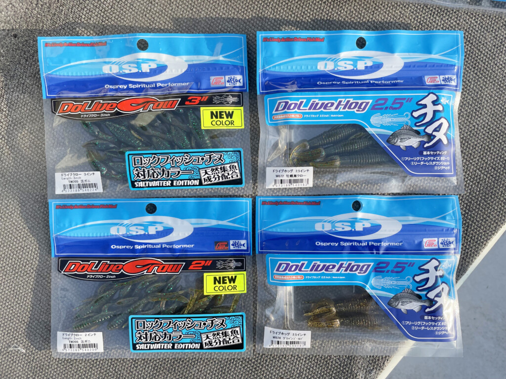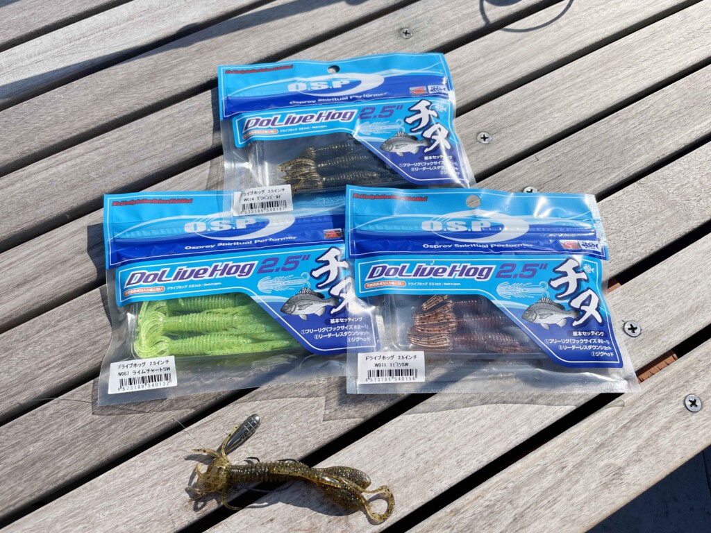 そして、カサゴもキビレも同じボトムを狙う釣りなので、自然とドライブホッグを使いました。そしてキビレもクロダイも良く釣れていました。今でも私が激押しするワームでO.S.Pに熱望して、今回SWモデルが遂に発売となりました。