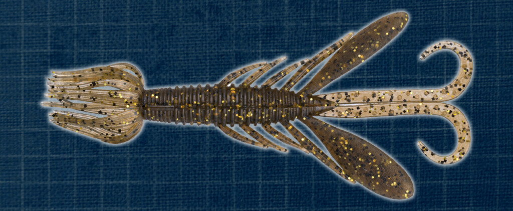 今回釣りをしたエリアは水深2m前後のシャローエリア。まずは、サーチベイトの「ドライブホッグSW」を投入。すると、スグにヒット! ヒットカラーは「グリパンゴールド」。やはり安定のマストカラーです。