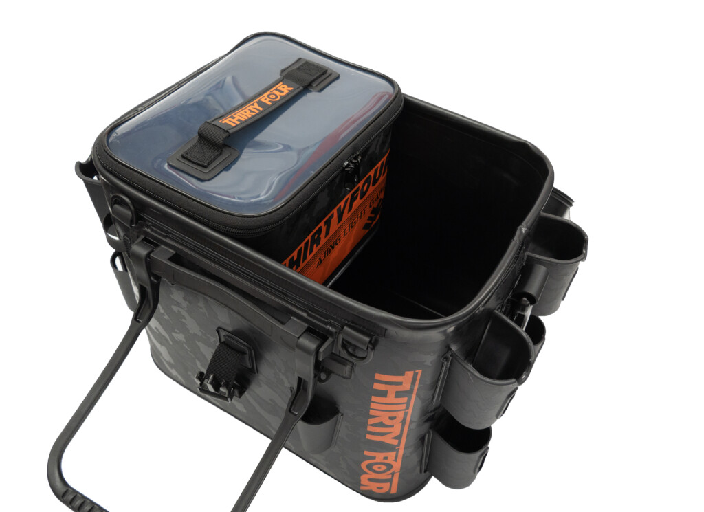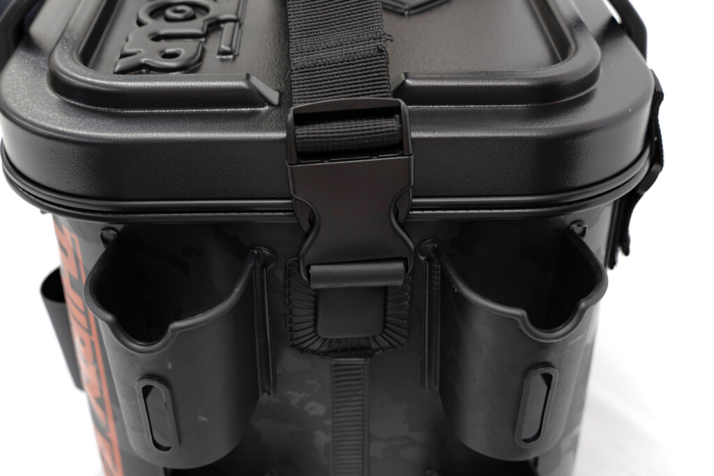前作で好評だった手持ちベルトはそのまま継承しているので、肩掛けでも手持ちでもお好みのスタイルで持ち運びしていただくことが可能です。また、HMグリップを掛けることのできるループや、フォーセップやプライヤーなどを掛けられるホルダーも側面に追加しているので、釣行時に活躍してくれると思います。