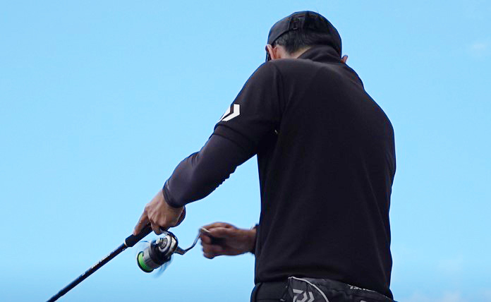 ターゲットのレンジが水面下5m以内に居るとすれば、着水後2~3秒カウントしてリトリーブ。中層に居るのであれば4~6秒ほど、ボトムに居るのであれば7~10秒など…。モチロン使うウエイトやフィールドの水深、潮流によってカウントは異なってきますが、こうしてカウントを刻みながらリトリーブスピードを調整することで一定のレンジをトレースしてくることができます。