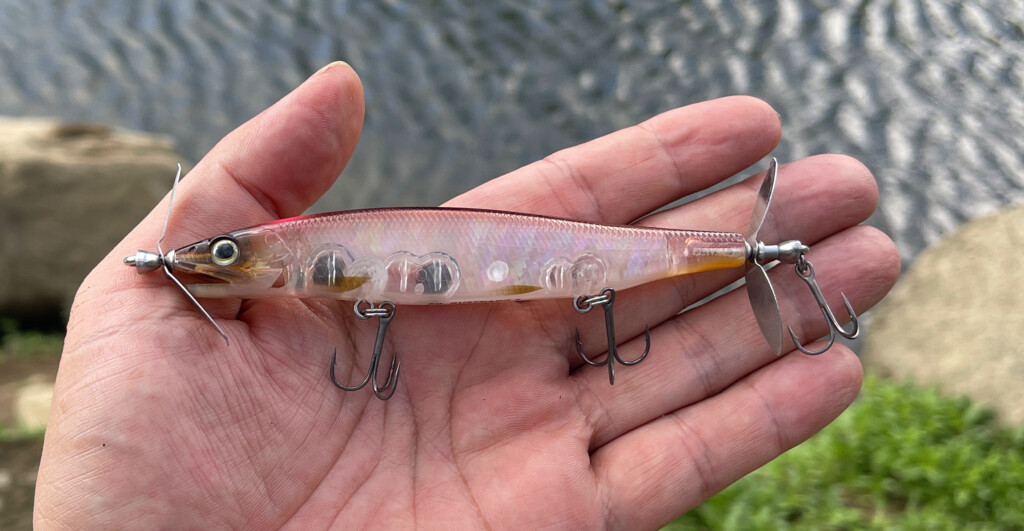 ベイトの姿も多いこともあって、一発ドカンもモーニングバイトを狙って選択したのが、オカッパリ特化型・羽根モノ「バンクフラッター」。