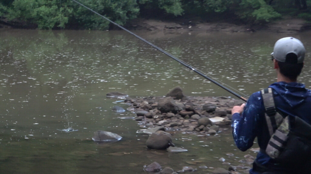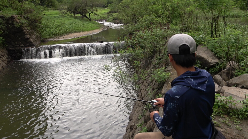 佐々木さんが朝イチ狙いを定めたのがクリアな水が流れ込むインレット!