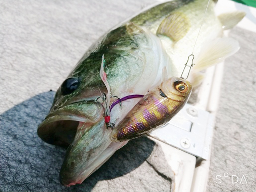 ドクリアのシャローでは「リーサル・ポッパー65」の出番ではないでしょうか。ポップ音が控えめなうえ、シルエットも小さくてスレているバスも騙しやすいです。