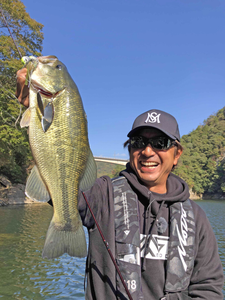 そんな時は盛三プロの最近のお気に入り「釣れない時はスローローリング」で深いエリアを探っていく。