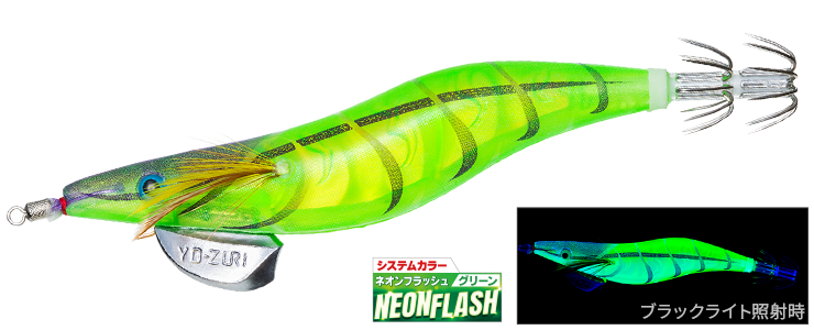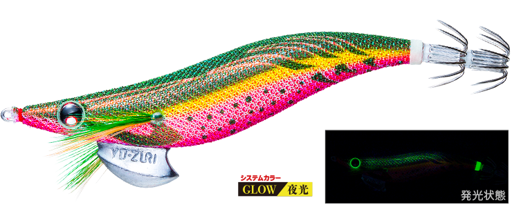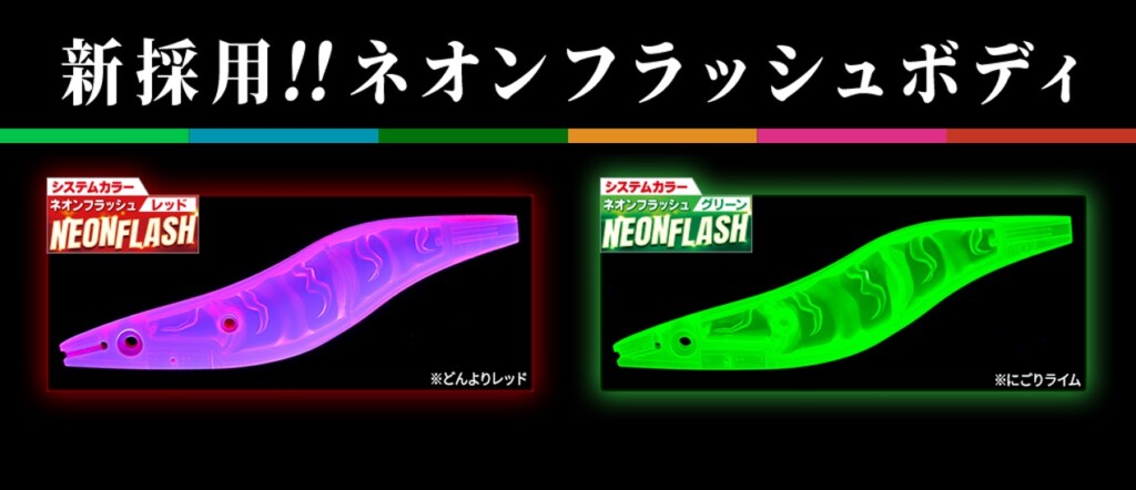 曇天時や濁潮といった紫外線が届きにくい状況でも、ボディが持つカラー発光特性によりアピール力を発揮するとのこと。