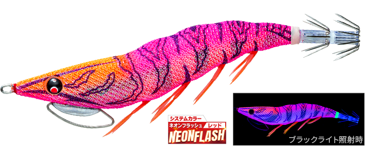 紫外線発光しつつシルエットがハッキリでるネオンフラッシュレッドボディ採用。