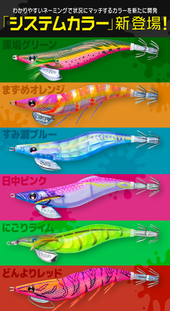 その内容とは、『DUEL・YO-ZURIのエギに「システムカラー」が追加!』