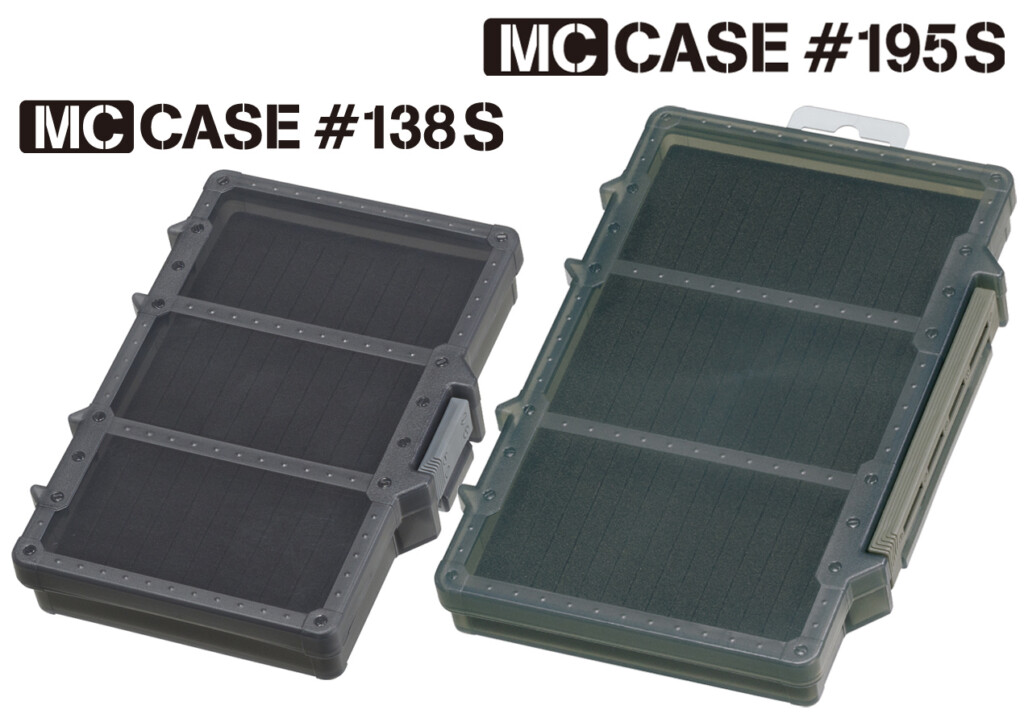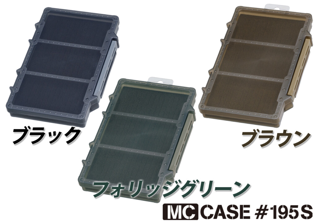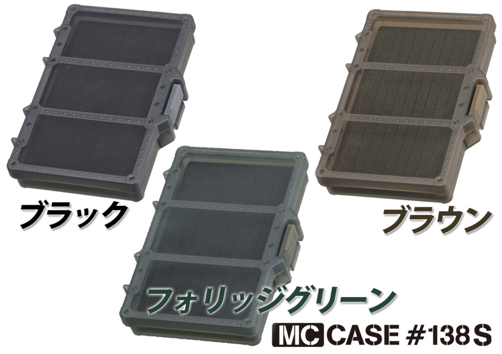 今回ピックアップしたスリットが入った特殊フォームタイプの「MCケース#138S/#195S」のほか、仕切板無しのフリータイプ、仕切板付のワームケースの3種類展開、カラーもブラック・フォリッジグリーン・ダークアースの3種類となります。