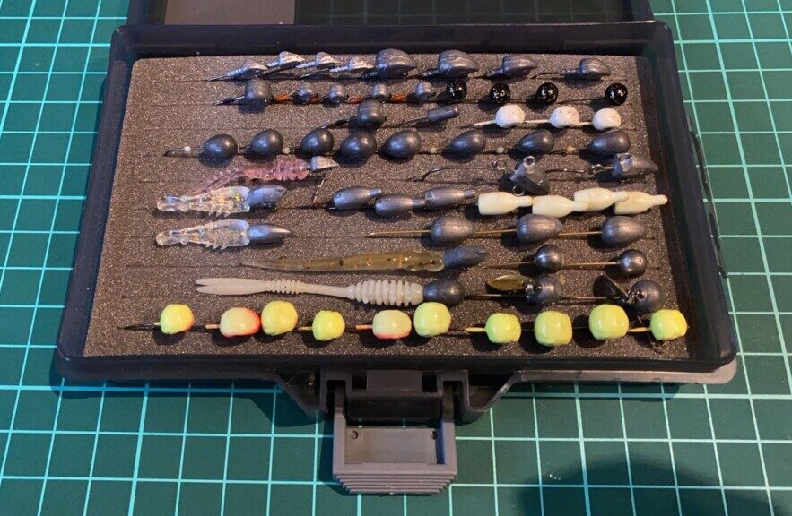 主にジグヘッド+ワームの“ジグ単”セッティングが主に使用され、様々なデザインやカラーのワーム、ウエイトや形状が異なるジグヘッドを使い分けることが重要と言われています。