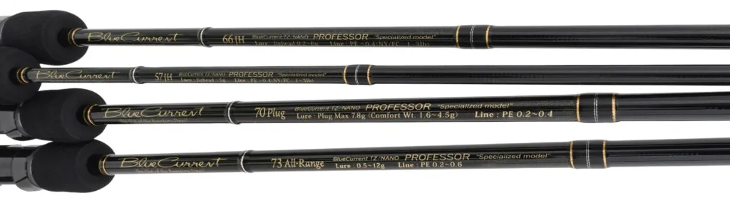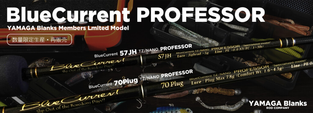 プロフェッサーシリーズはヤマガブランクスを代表するライトゲームシリーズ「BlueCurrent-ブルーカレント」をよりシャープな使用感で上級者のニーズに応えるための特性を求めたシリーズです。「ハイレスポンス」という共通したコンセプトのもと設計することで、キャストや、アクション後の収束の速さ、アタリを感じてからフッキングまでの速さ、ファイト時にはその復元力をいかした魚を浮かせるパワーなど、アングラーのスキルを最大限発揮することができます。