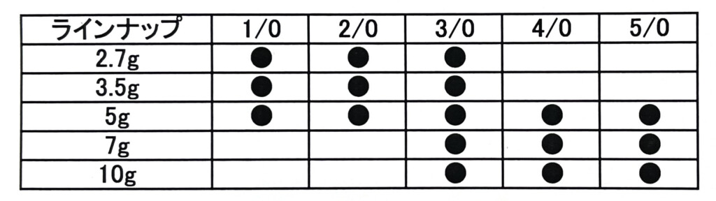 | フックサイズ | ウエイト | 入数 |