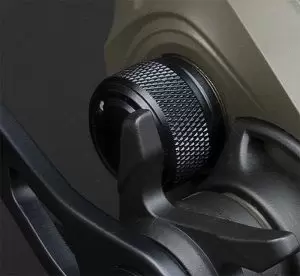 ルアーを操作してアプローチしていくような釣りに向くことから、ハンドルノブもつまみやすい軽量EVAフラットノブとなっています。