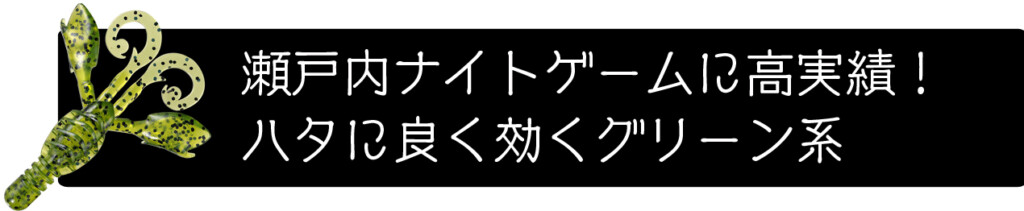 だからグルーパーバグのカラーについても「瀬戸内×ナイトゲーム」での高実績カラーと、「外海側×デイゲーム」での高実績カラーを中心に構成しているんです。