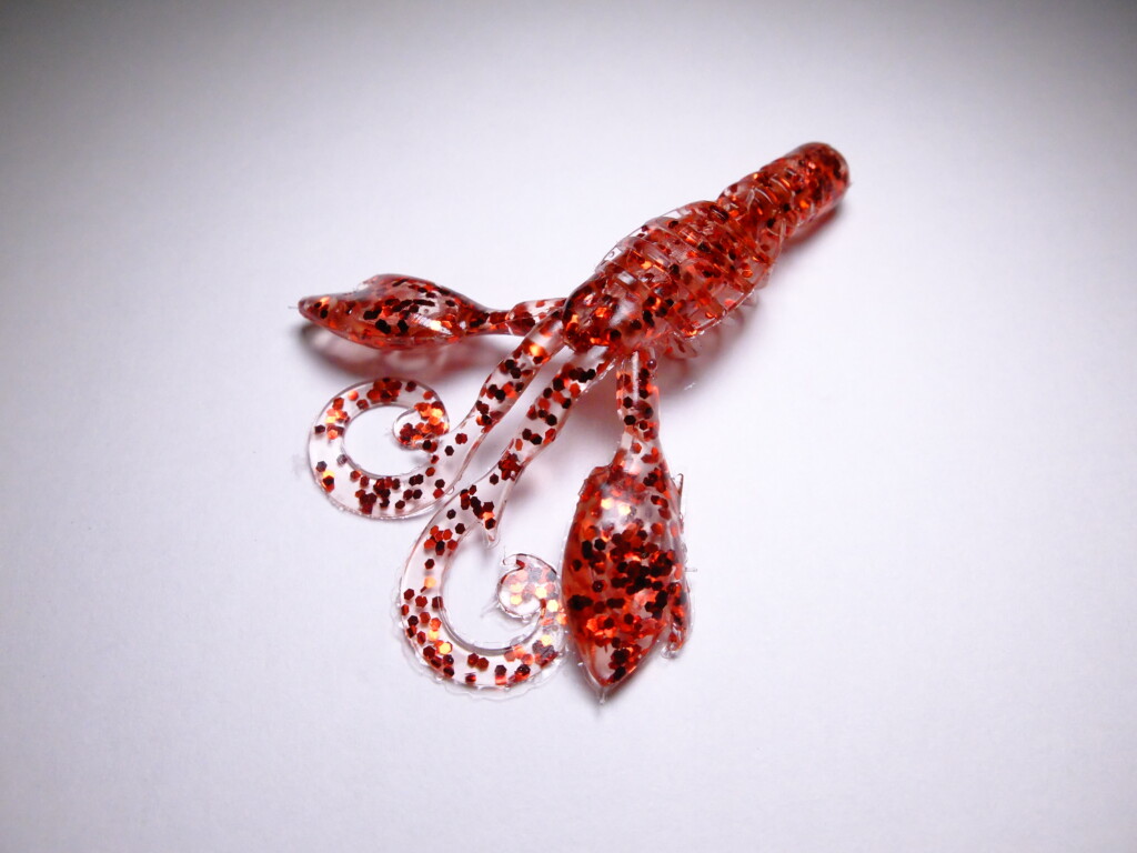 メバル用のスクリューテールグラブに同じ色(N5)があるので、それと同じに作って下さいとスミスの担当者に伝えました。甲殻類の色なのか、やっぱり赤って効く時があるんですね。