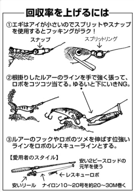 各社からいろんな根掛かり回収機が発売されているけど、そんな中でも、かなり根掛かり回収率の高いアイテムとして多くの支持を受けているのがこのレスキューロボ!