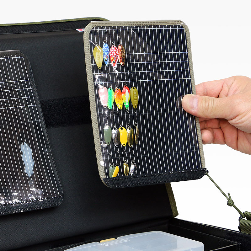 フラップ裏面にルアー収納アクセサリーのエクスチェンジャー(別売)を装着することで、快適で素早いルアーローテーションを実現!