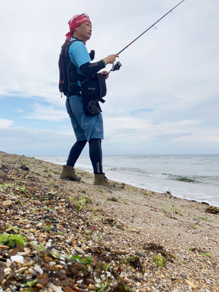 つまり、砂地&砂利浜にいるロックフィッシュは高活性な魚が多いということになります。また、岩礁エリアとは違って、魚が1箇所に複数尾溜まっていることが少なく、エサを追い回して広く動き回っている個体が多いのも特徴。これらのことを踏まえた結果、導き出されるサーフロック攻略法はズバリ! “遠投で広範囲をスピーディーに攻める!”つまりロングロッドを使用したスピニングタックルで遠投し、スイミングやリフト&カーブフォールなどのスピーディーなアクションで、広範囲をアップテンポに釣り歩くことが、サーフロックのセオリーに。