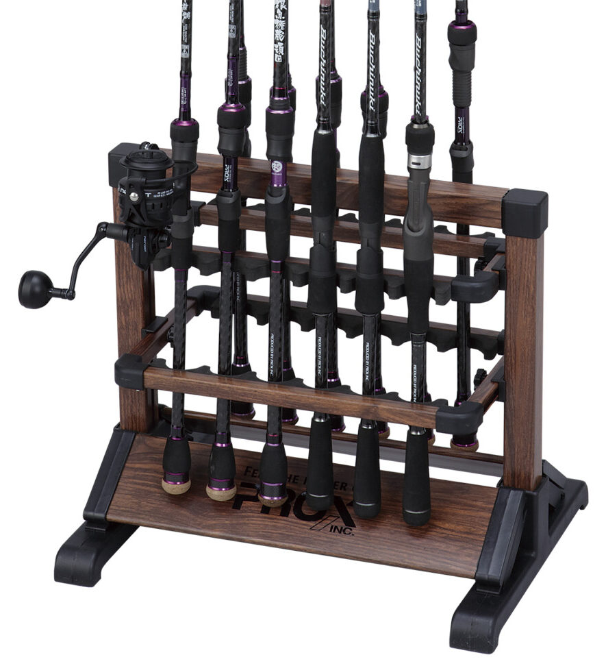 軽量アルミ製のロッドスタンドがインテリアになじむ木目調の風合いに仕上げられた「アルミロッドスタンド木目調」。