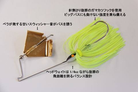 反対に「ジャンボバズベイト」は、オリジナルよりもペラが大きく、ゆっくりと誘いたい状況に効くとのこと!
