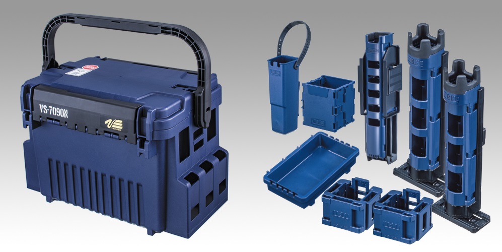 「VS-7090N SPパッケージ」では、「ロッドスタンドBM-250Light(2個)」「マルチホルダーBM-25(2個)」「ロッドスタンドBM-240slide」「ルアーホルダーBM」「オリコンドリンクホルダーBM」「トレイBM-S」、計8個ものオプションパーツがセットになります。