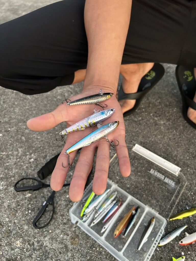 横を見ると、ウキ釣り師のウキによくアタリが出ていたので、すぐさまサイズはそのままにライトウエイトの「88LW」に変更して、スローな釣りに切り替えることに。