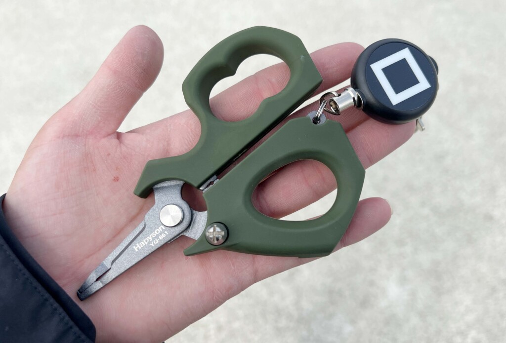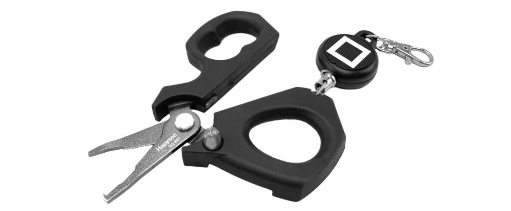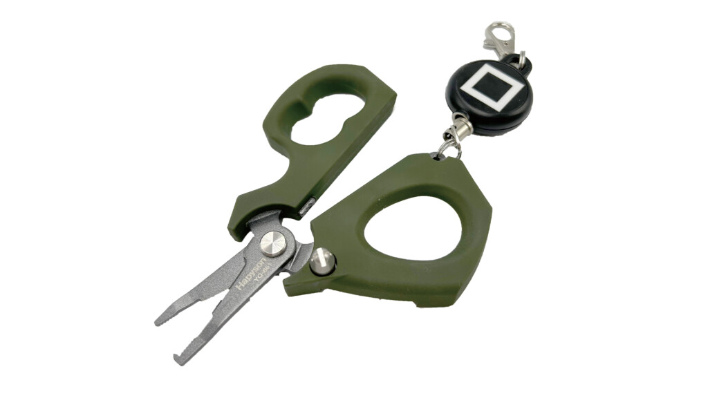 PEラインカット、スプリットリングオープナー、アイチューナー、フックシャープナー、カシメ機能、ピンオンリール、計測マーカー。充分…いや、それを上回っている完全に、その名は「計測マルチプライヤー」。持ち手がエラストマー素材のハサミ型で、握りやすい&手に馴染みやすいのも特長。