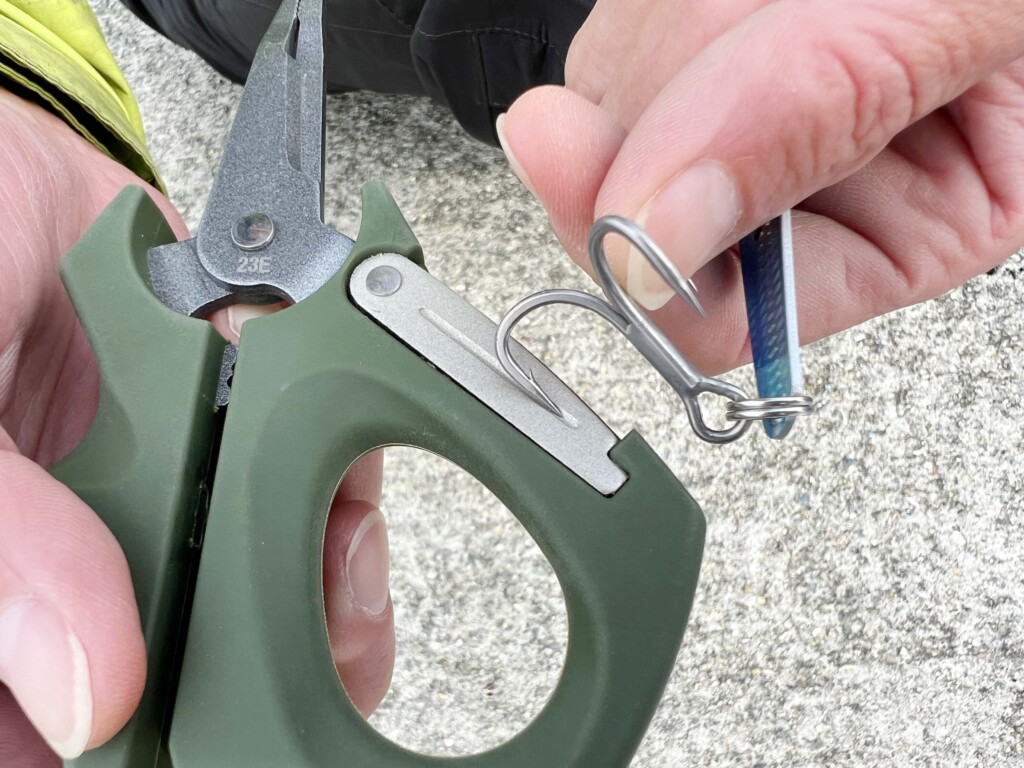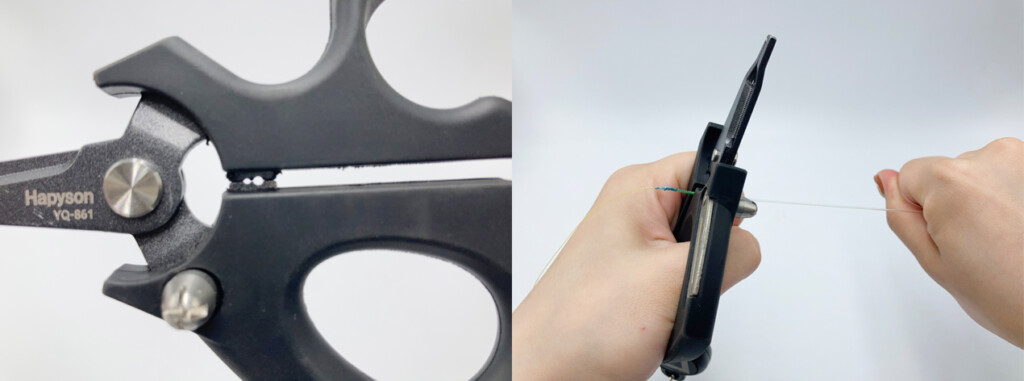PEラインがスッパスパ切れる“PEラインカット”。特に注目していただきたいのが、刃の幅が長いため、とにかく切りやすくなっています。