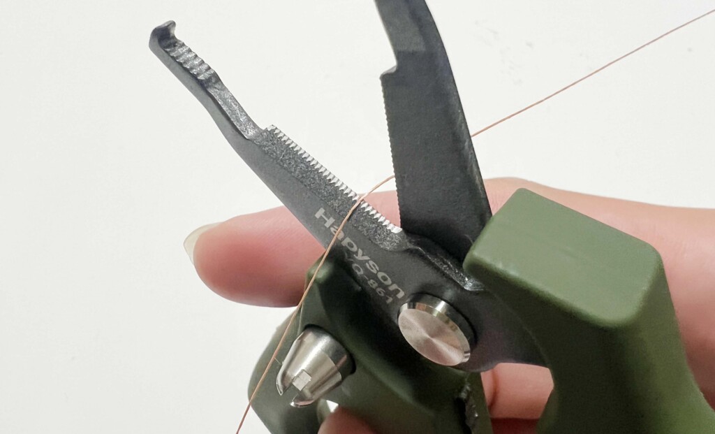 青物ゲームやタチウオ&サワラといった大型魚や歯の鋭い魚などを釣る時に行うことが多いスリーブ締め、それからガン玉つぶしなどにも活躍“カシメ機能”も標準装備。大型青物を狙われる方、タチウオ釣りでワイヤーリーダーを自作するという方にも◎。
