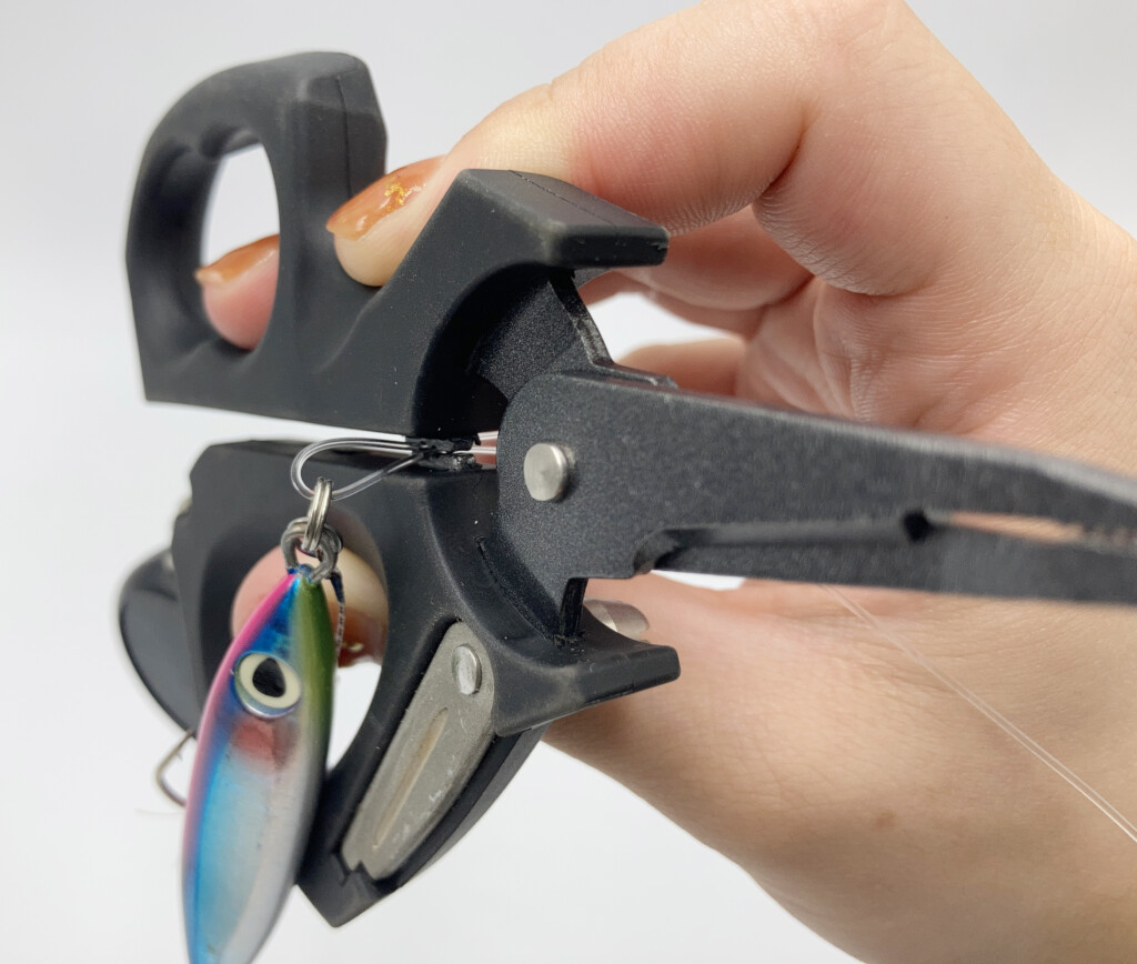 使っているうちにフックが鈍くなってきた…そんな時、作業と同時にフックも研げるという便利な機能“フックシャープナー”も標準装備。フックが傷めばスグに交換! と言いたいトコロですが、そもそも予備のフックが無かったり時合の真っ最中だったりで、交換できないことも当然。そんな時にこちらでサッと研ぐだけでフッキング率がUP。溝に沿わして数回研ぐだけなので簡単&スピーディー。