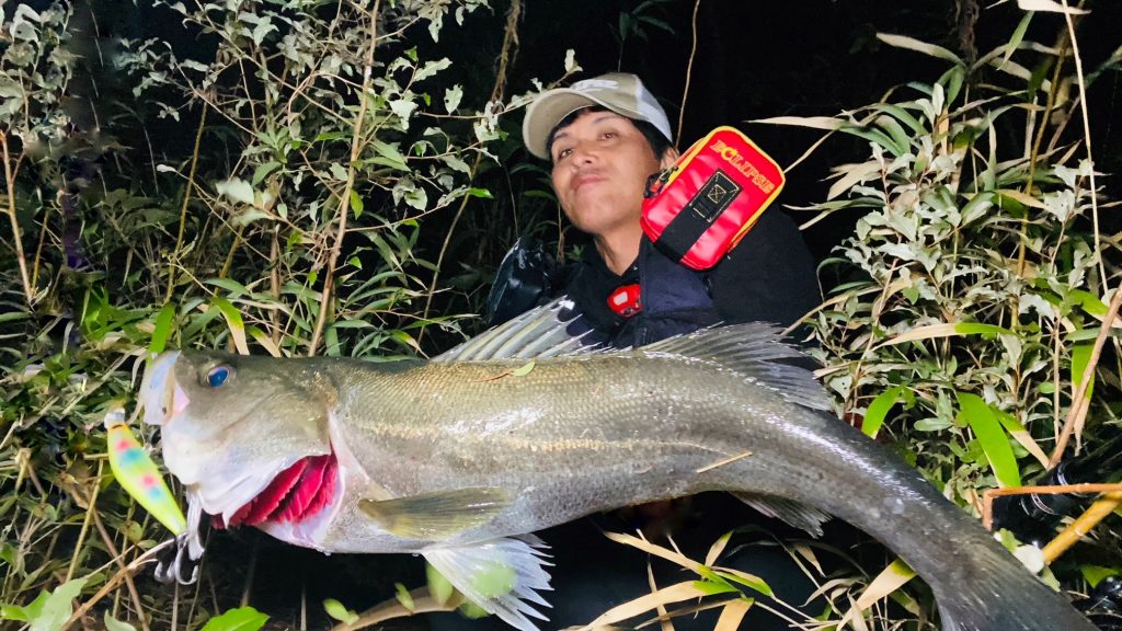 リバーシーバスゲームはもちろん、河口付近のサーフなど、ルアーの側面からの流れがあるエリアに活躍するテクニックとなります。