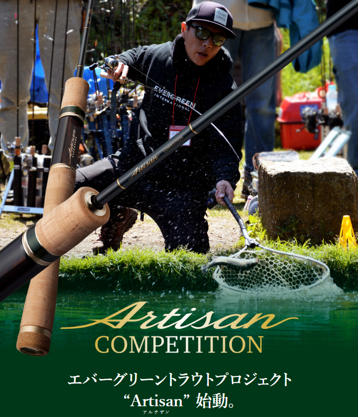 エバーグリーントラウトプロジェクト第1弾として登場するのが、エリアトラウト競技ロッド「アルチザン・コンペティション」シリーズ。