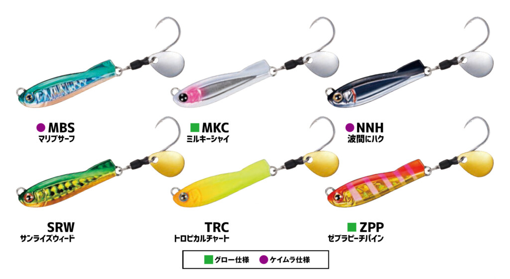 新たに登場する、メタルエフェクト ベイトチューンは、堤防や港湾部・サーフで手軽に様々な魚種を狙える小粒なブレードジグ。対象魚はハッキリいって何でもアリの五目狙いで使えます! 一応、魚種を挙げてみると、カサゴをはじめとする根魚、キジハタ、オオモンハタ、あと、ショゴやワカシ、サワラ、サバやカマスなどの小型回遊魚などなど、ホント何でも狙えます!