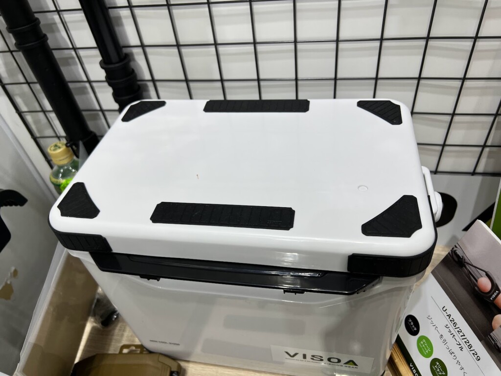 これ、個人的にすごくアリ。というのも滑らないとか、キズがつきにくいというのはもちろんなんですが、クーラーとかタックルボックスってお気に入りのブランドのステッカー貼ったり、あれこれカスタムしてませんか? これがもしがっつりロゴが入っていたり目立つカラーだったりすると、統一感がなくなるというか…そう、このシンプルさが良き。これ、共感できる方少なくないんじゃないでしょうか。
