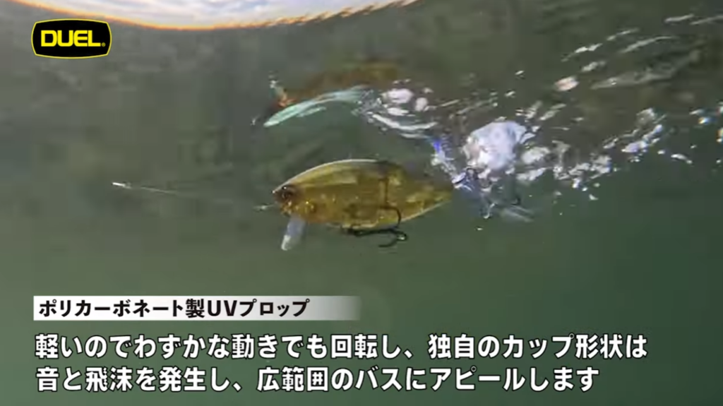 「L-バス ウェイクライダー」は、ラトルサウンドとプロペラカップのしぶきでバスを誘うことができる、万能タイプのウェイクベイト。