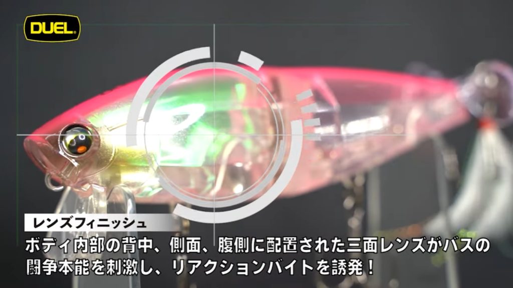 ボディ内部のダイヤレンズフィニッシュが輝きを増幅・拡散させることで、ベイトフィッシュの複雑なカラーを再現。バスを広範囲から引き寄せ、リアクションバイトを誘発させることができる喰わせに強いラインナップとなります。