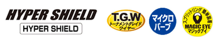 人気の秘密は、強度、耐摩耗性など基本性能が高いことで知られる「トーナメントグレイドワイヤー」が使用されていることに加えて、強力な防錆効果のある表面加工「ハイパーシールド」が施されていることなどから!