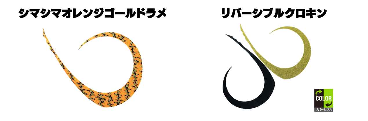 どれも厳選されたカラーとなっております。特にまもなく始まるイワシパターンで効果的なのが“シマシマオレンジゴールドラメ”と“リバーシブルクロキン”。