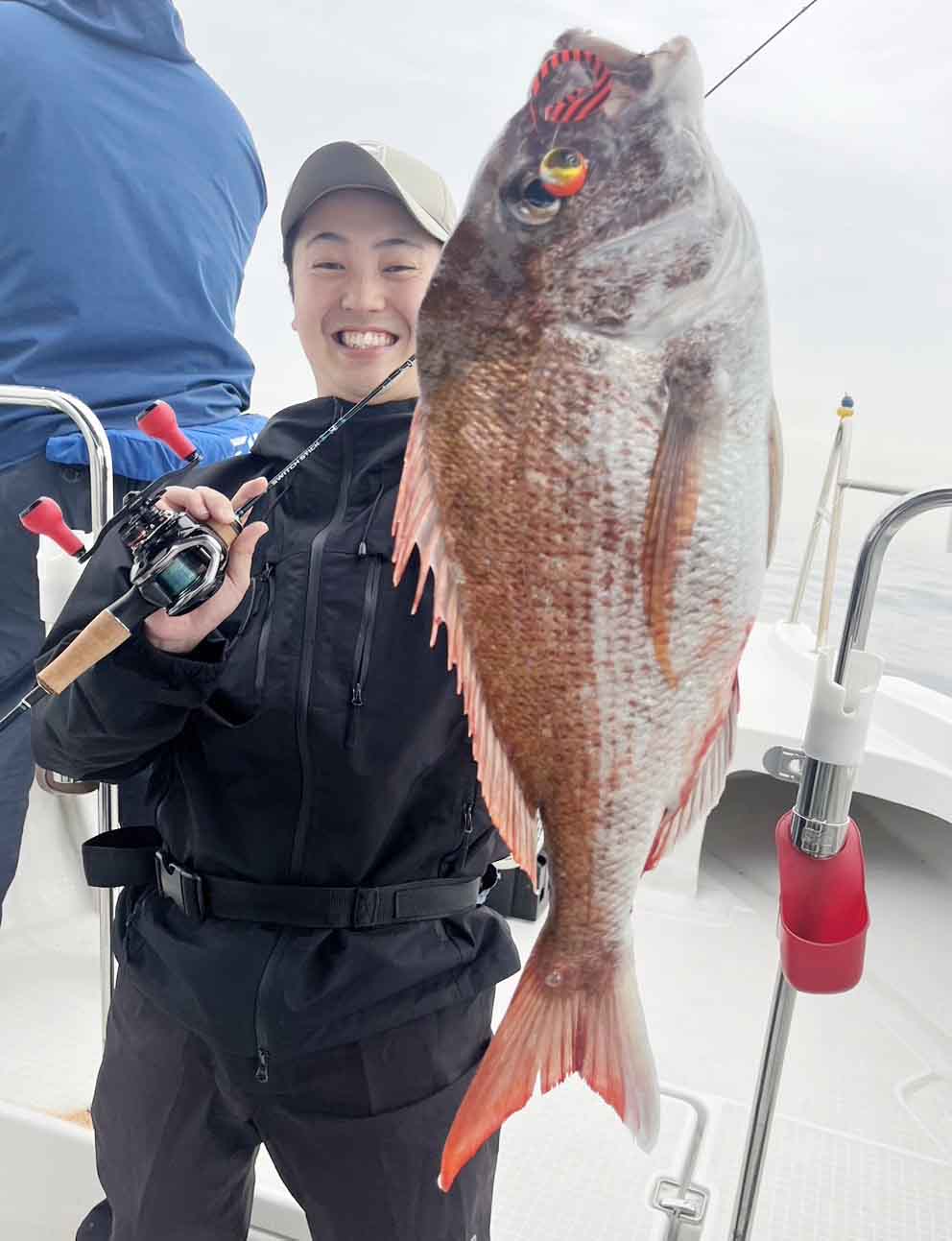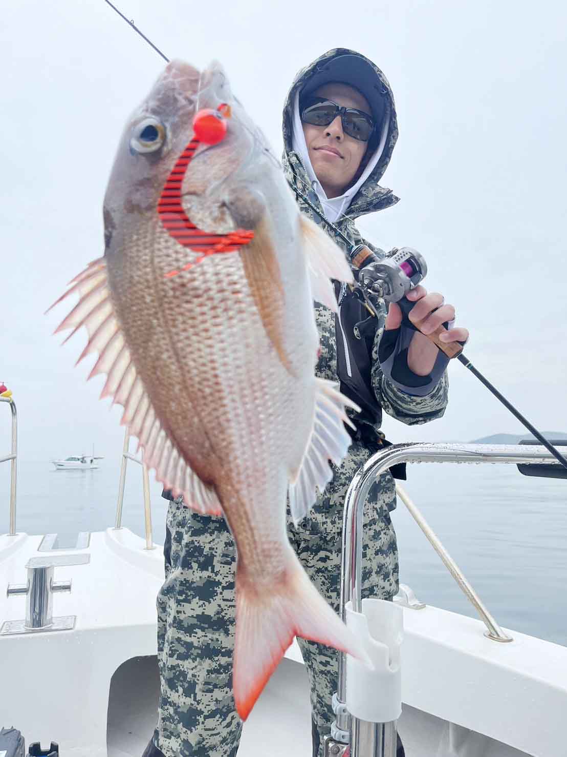 マダイの産卵が終わろうとしていると同時に、今度は色んなエリアでイワシの反応も出始め、まだ大半のマダイはイワシに付いてはいないものの、中層でナイスサイズもチラホラ釣れだし、産卵からの早い回復を期待しているトコロです。