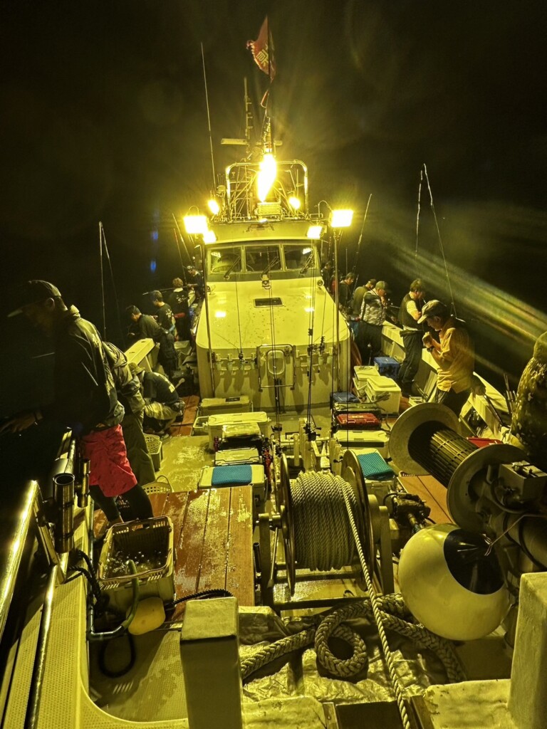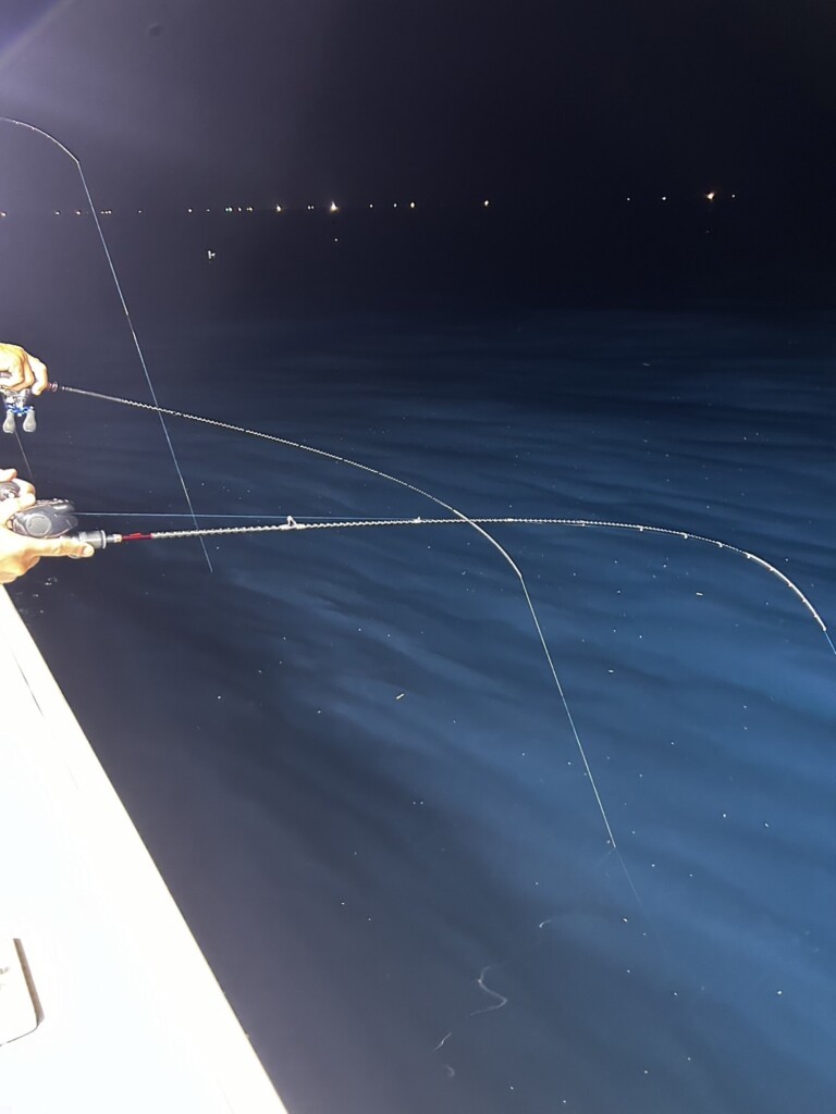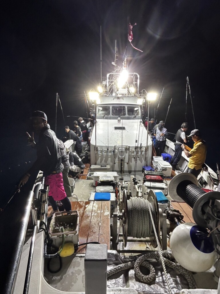 イカメタルに使用される魚を集める為の集魚灯の光は「青色LED」や「メタハラ」などが主流。船上で灯りを見たら目がくらみますよね。