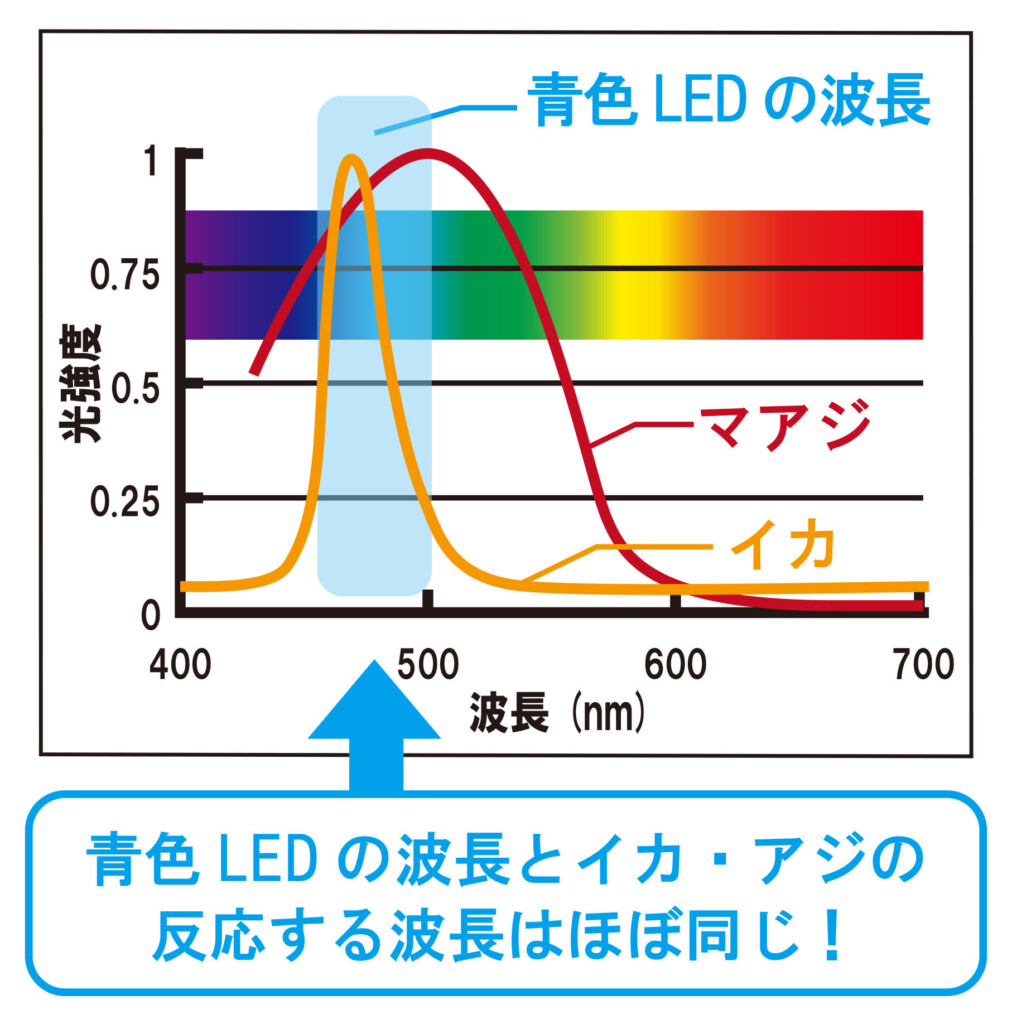 上の図1ではイカとアジが反応する波長の折れ線グラフも入れてい