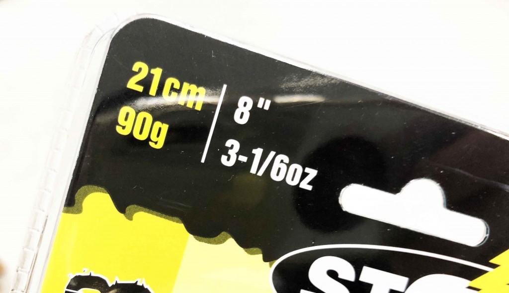 サイズは21cm(8inch)で90gというビッグベイトカテゴリー!