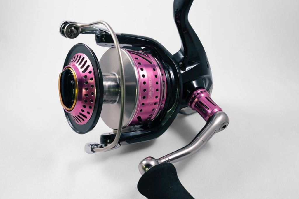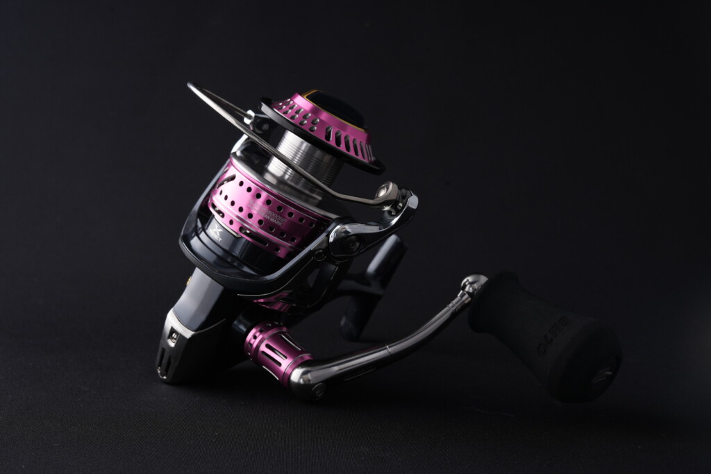 ブラックは「NO LIMITS 19SW14000/8000BM70-MsBk」、そしてピンクが「NO LIMITS 19SW14000/8000BM70-PiDS/L」。ハンドルを変えるだけでグッと統一感が出て、まったく違ったリールになったような。