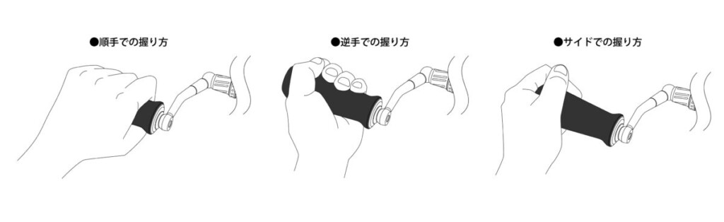 なお、「BMノブ」は長時間対応ノブ形状として周知。様々な握り方に対応することで 腕全体の筋肉を使用、疲労を軽減する発想が採用されたノブ。