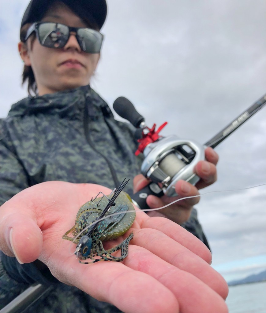 特に5gのAEにワイドをセットすることで、エビ藻に対してスパイラルフォールをしながらユラユラとフォールさせ誘うことができます。フォール時お姿勢はまるでブルーギルそのものですよ!