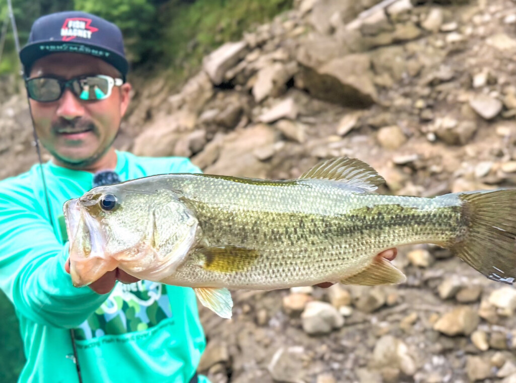 雨後のダムへ。水温上昇がキーになって難しい感じだった