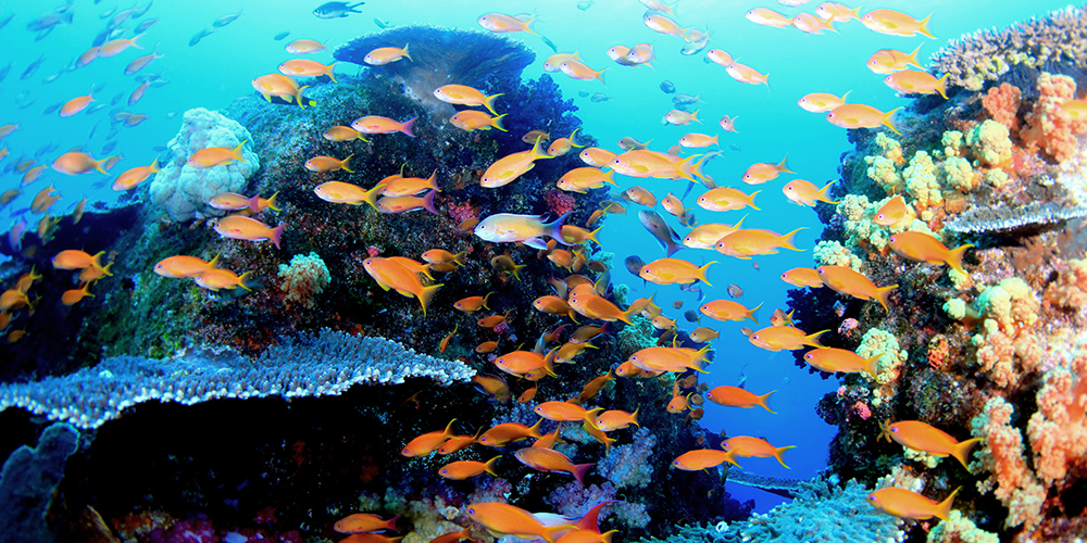 目前には1000種を超える魚が泳ぐ海。ルアー系の釣りモノだけでも、ヒラスズキ、青物などのロックショア系ターゲット、堤防や地磯ではアオリイカ、アジ、オオモンハタ、アカハタ、チヌ…、サーフではヒラメやマゴチなど、1年を通してあらゆるターゲットが狙える。そして魚影もバツグンに濃い。