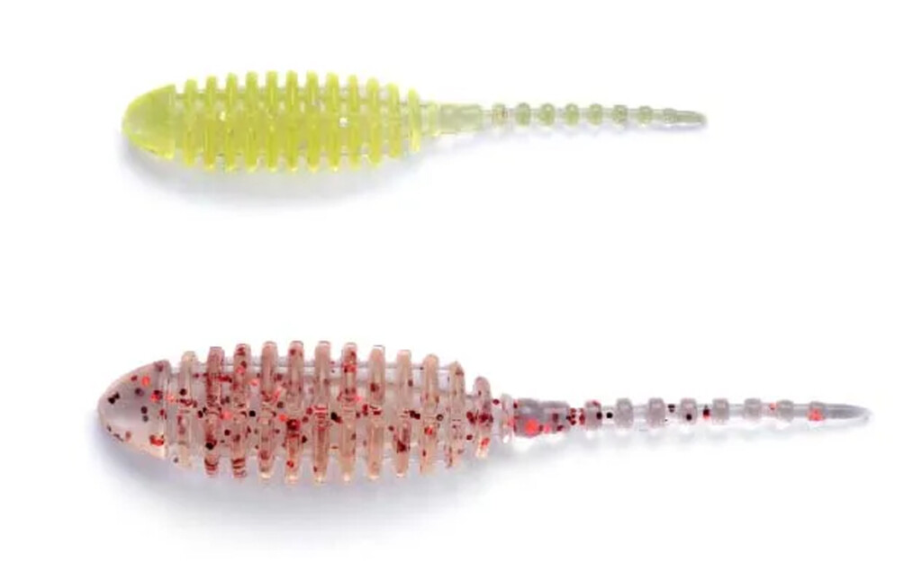 素材にはスーパーソフトマテリアルが採用されていて、さらにボディに施された多数のリブにより、わずかな水流でもしっかりアクション。さらに、アジやメバルの吸い込みやすさにも貢献。