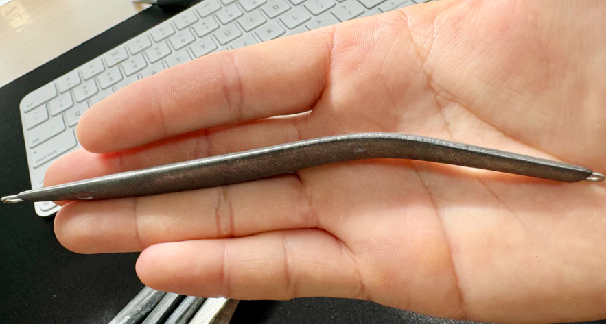 これも何パターンかサンプルを試し、3回ほど失敗してしまいましたが、4回目にしてようやくある程度納得できる強度に。どうしても後端の細い部分が弱いため、魚を釣った際に曲がる場合があります。その際は手で戻していただければOKです。